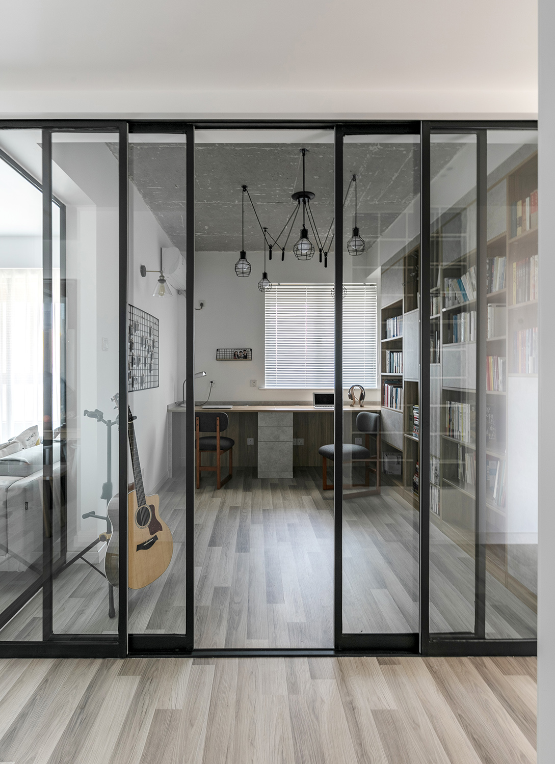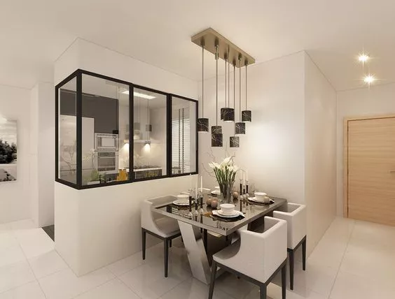 玻璃隔断现在已经很流行了,它可以是门,可以是隔墙,也可以做装饰造型。当然,它最主要的作用是采光,还显家里空间大。